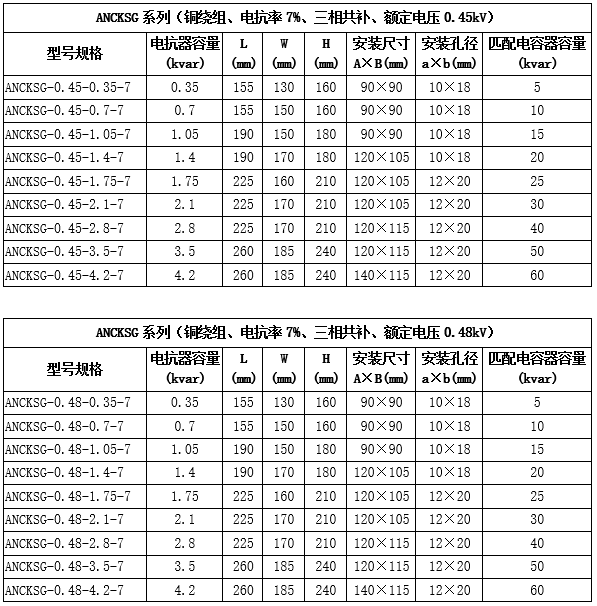 技術要求:適用電容器5kVAR;7%電抗率;銅芯