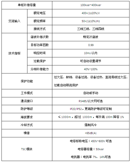 技術參數:無功補償分補容量100kvar,共補容量50kvar