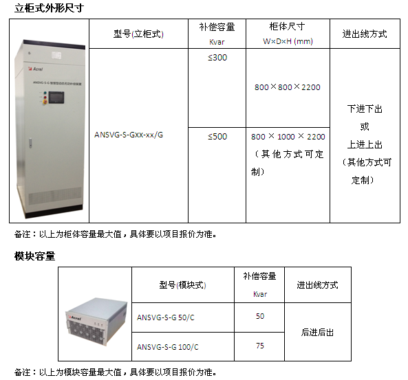安科瑞產品智慧型動態無功補償裝置主動根據系統的線性動態需求,自動調節有源及無源模塊的輸出配比,ANSVG-S-G整機主要是由ANSVG-S-G模塊、無源補償電容器(TSC)、液晶顯示器組成。