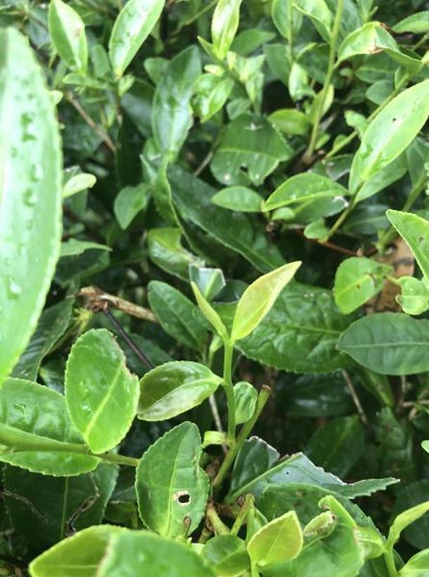 半喬木型,中葉類。植株主干較明顯,樹姿半開張,分枝密,根系發達。葉片著生近水平,葉長橢圓形;葉身平,葉面隆起,葉緣微波,成葉中綠色,富光澤;葉質厚,較柔軟,葉尖漸尖。新梢綠色,茸毛多,持嫩性強,單芽百芽重約 9 克,一芽三葉百芽重約 93 克。
